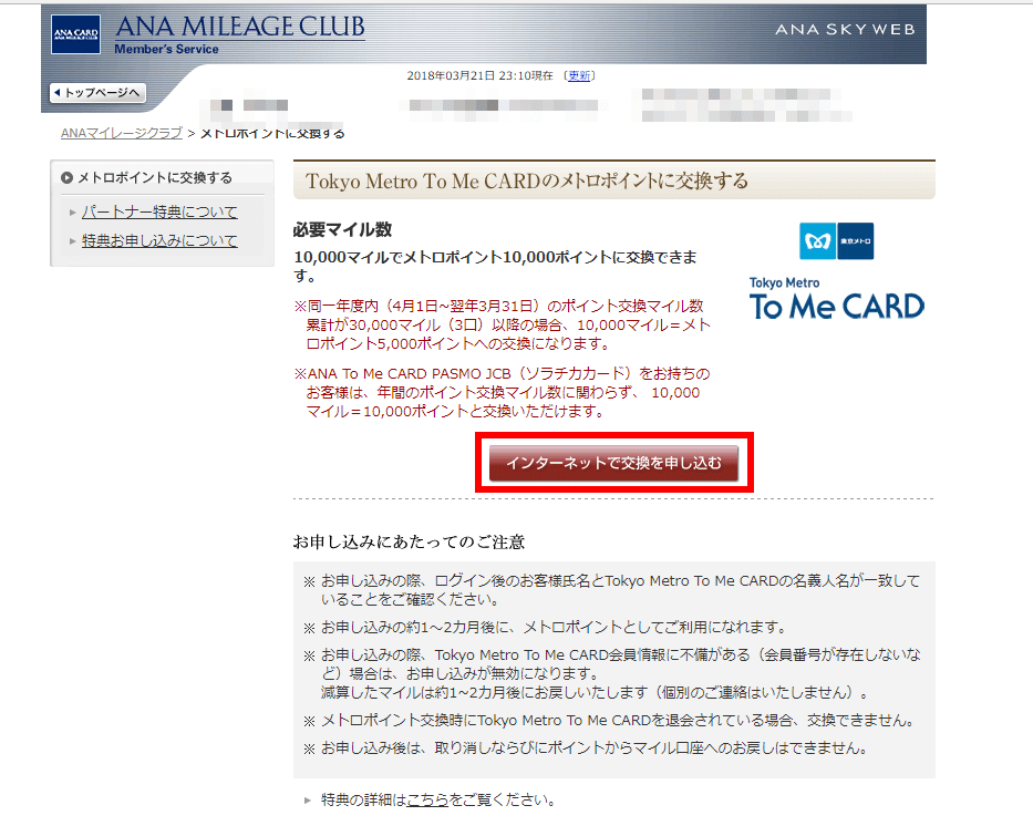 - メトロポイント→ANAマイルの1か月の移行は上限がある 20000ポイント(=18000マイル)が1月の移行上限なので要注意です。