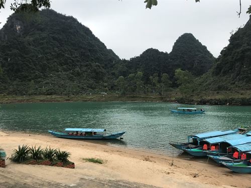 最初に天国の洞窟へ向かう。ところで、天国の洞窟は、世界遺産ではない。もう一つのツアーの目的地であるフォンニャケバン洞窟が世界遺産のようだ。ただ、天国の洞窟がフォンニャケバン洞窟より後に見つかったとのことで初めに見つかっていたらこちらが世界遺産だったかもしれない。ネット上の評判は天国の洞窟に軍配が上がっているように見えた。