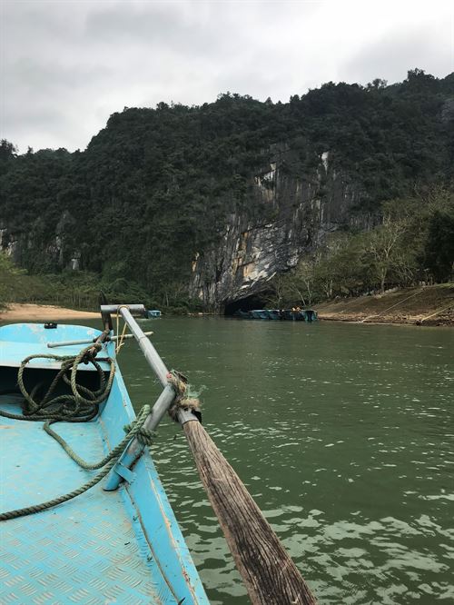 バスで移動し、川で船に乗り換える。洞窟へは船でしか行けないみたいだ。詳細な時間は記録するのを忘れたけど、船に乗っている時間は結構長く感じた。周りの景色になにかあるわけでもなく、退屈そのもの。
